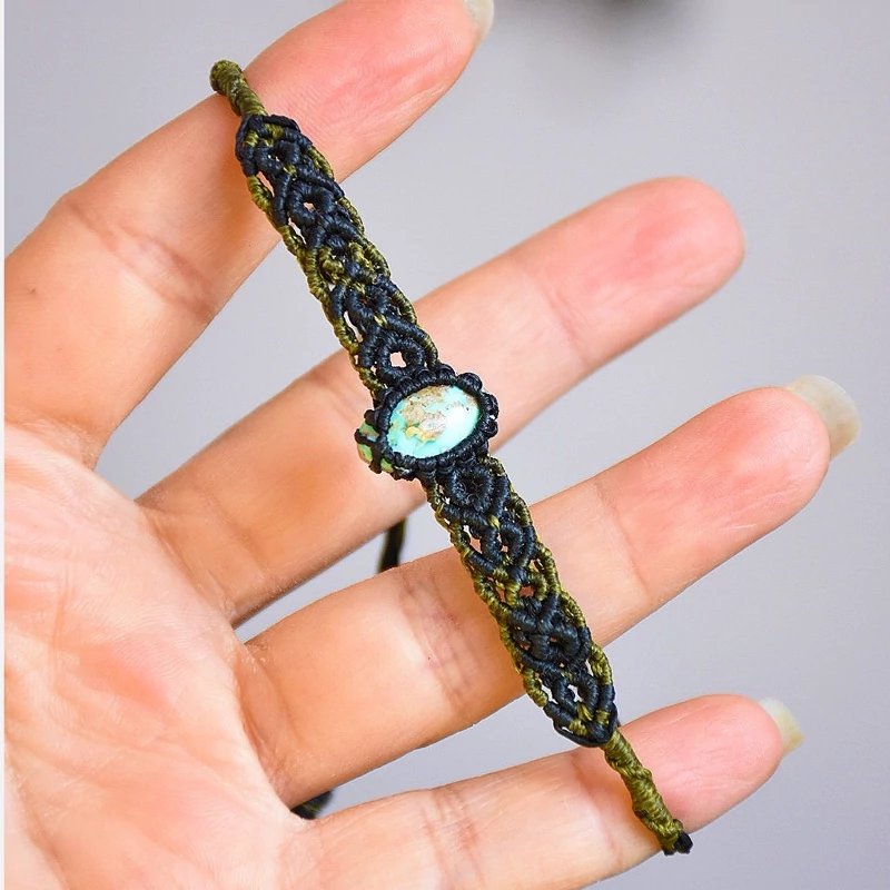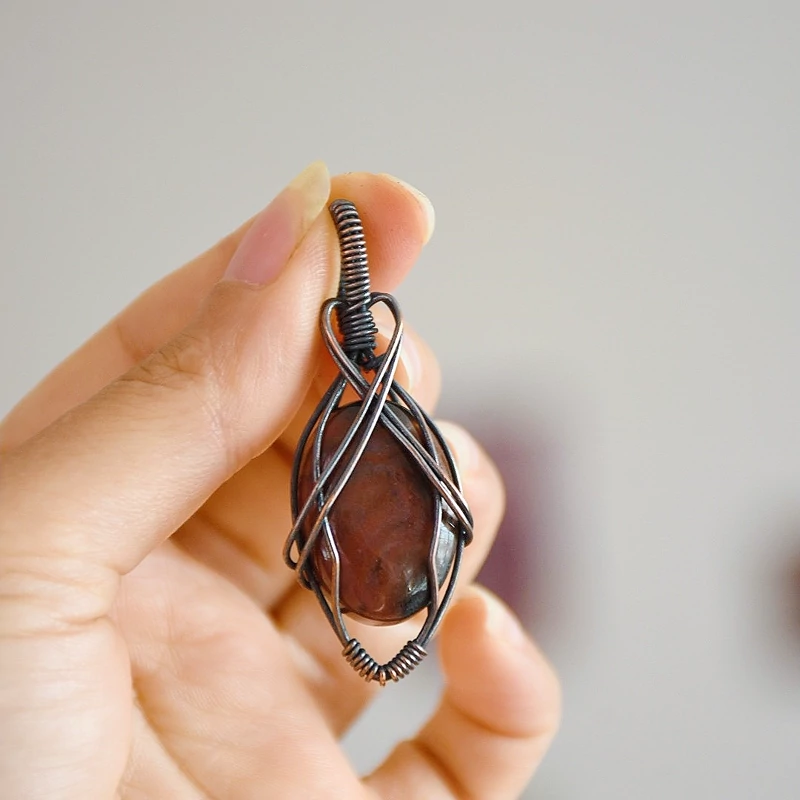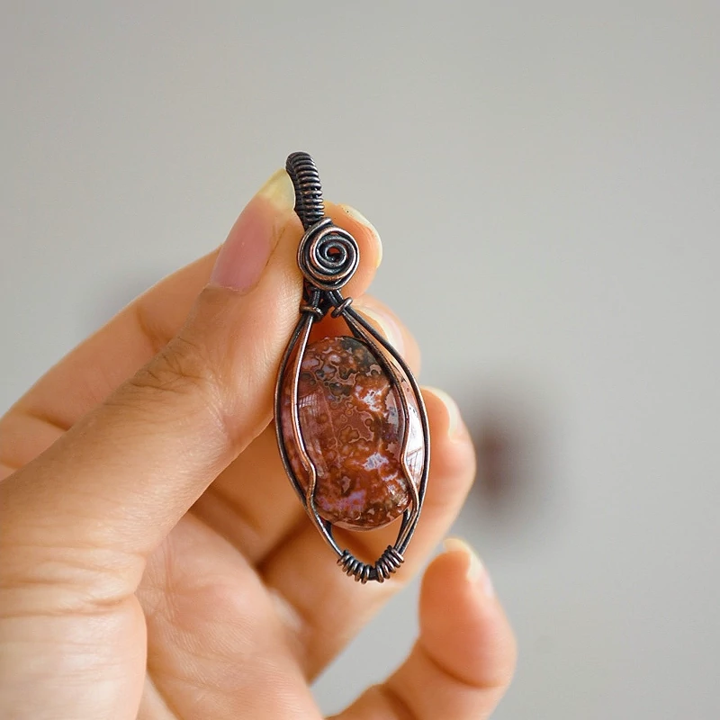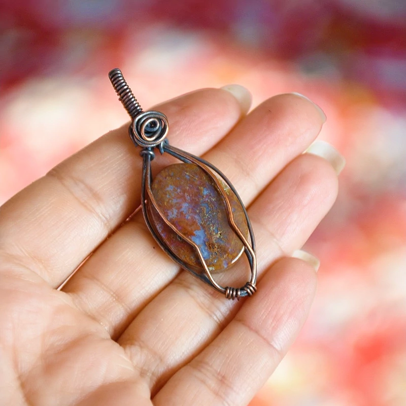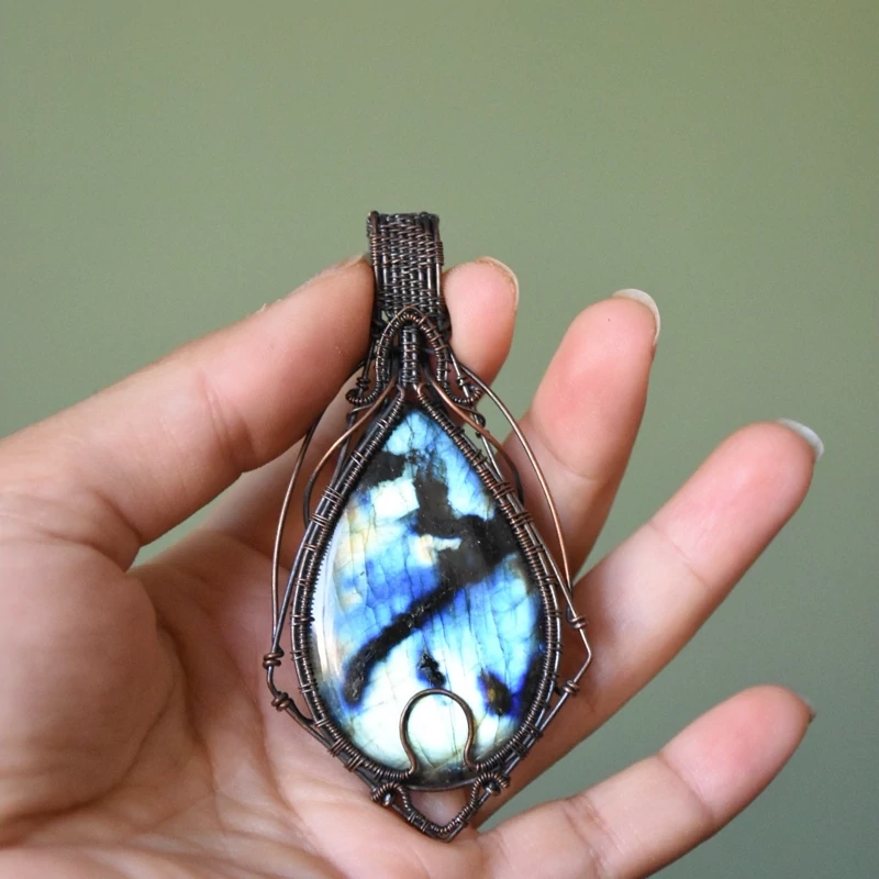گردنبند سنگ لابرادوریت با تلولو سبزآبی کپی