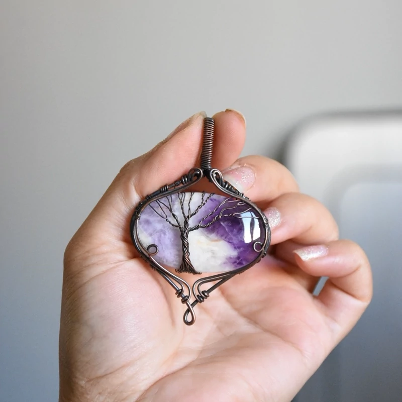 گردنبند جادویی بچه آهو با سنگ کوارتز شفاف