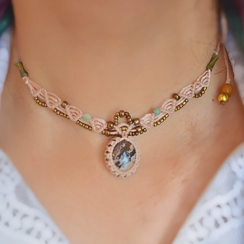 گردنبند سنگ لابرادوریت با تلولو سبزآبی