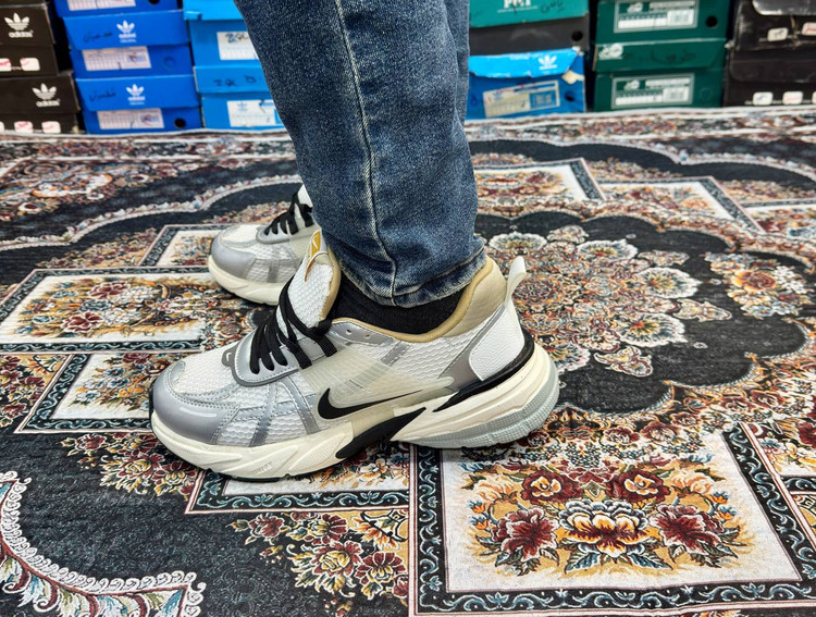 کتونی مردانه نایک v2k سفید نقره ایی