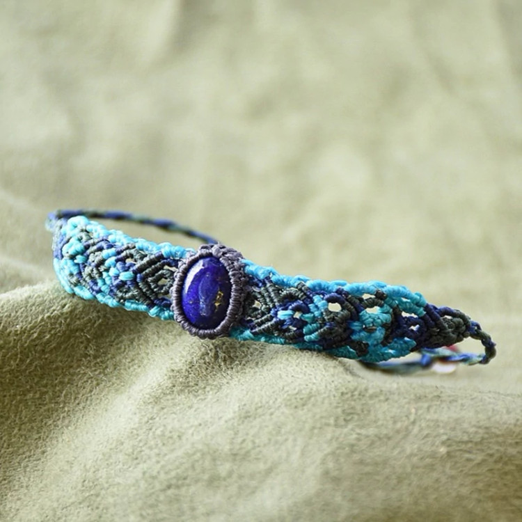 دستبند سنگ لاجورد بافته شده با نخ ابریشمی موم خورده