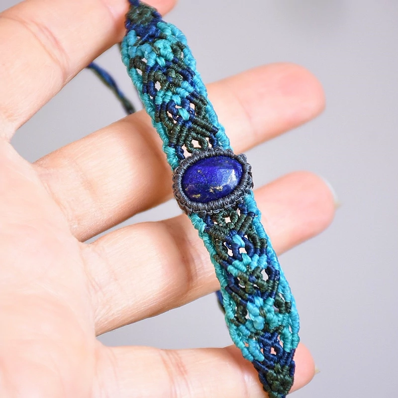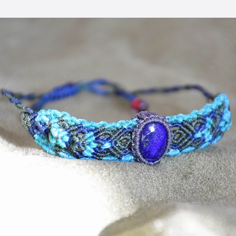 دستبند سنگ لاجورد بافته شده با نخ ابریشمی موم خورده