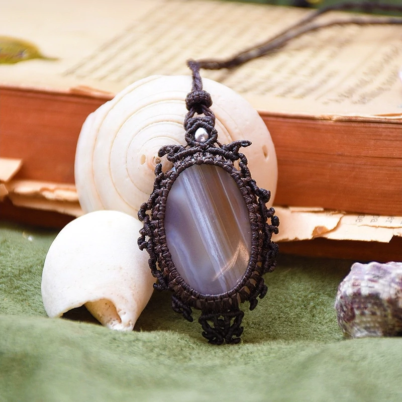 گردنبند سنگ عقیق سلیمانی بافته شده با نخ الریشمی موم خورده یه کار خاص و بینظیر با بند کشویی قابل تنظیم