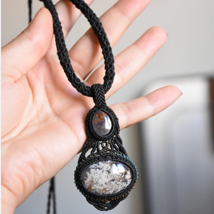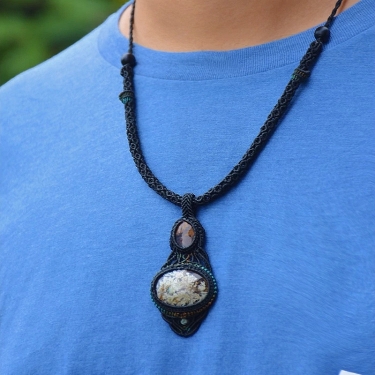 گردنبند ساخته شده با عقیق شجر فردوس با نخ ابریشمی موم خورده یه کار خاص و بینظیر
