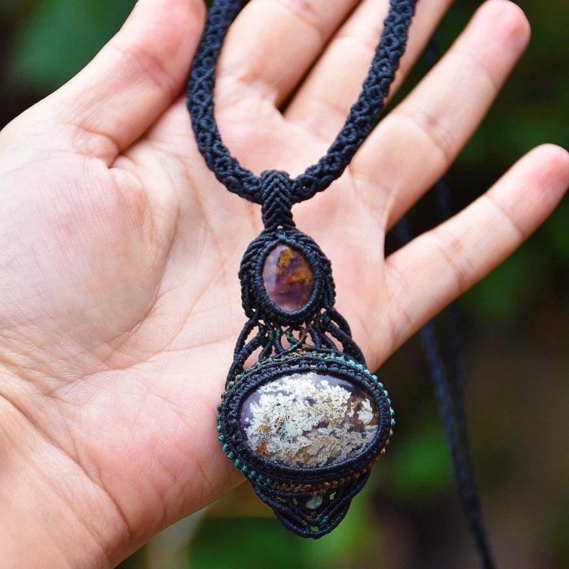گردنبند ساخته شده با عقیق شجر فردوس با نخ ابریشمی موم خورده یه کار خاص و بینظیر