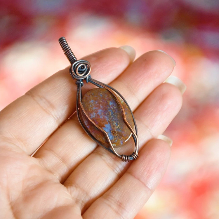 گردنبند سنگ عقیق جنس بدنه مس به همراه بند چرمی قابل تنظیم
