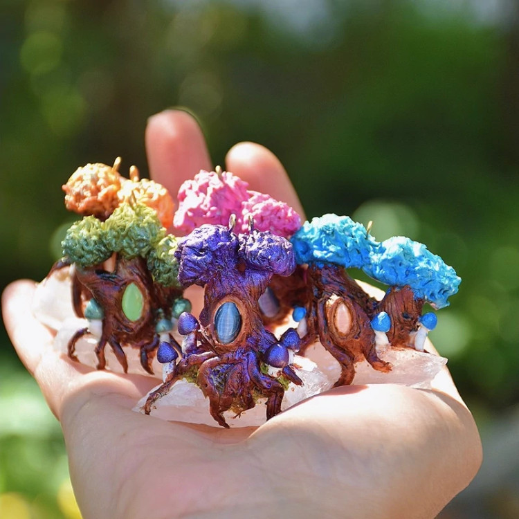 گردنبند های درخت زندگی ساخته شده با خمیر نشکن و سنگهای کوارتز معدنی و چشم گربه