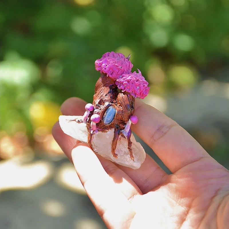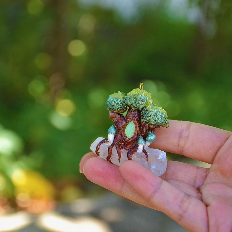 گردنبند های درخت زندگی ساخته شده با خمیر نشکن و سنگهای کوارتز معدنی و چشم گربه