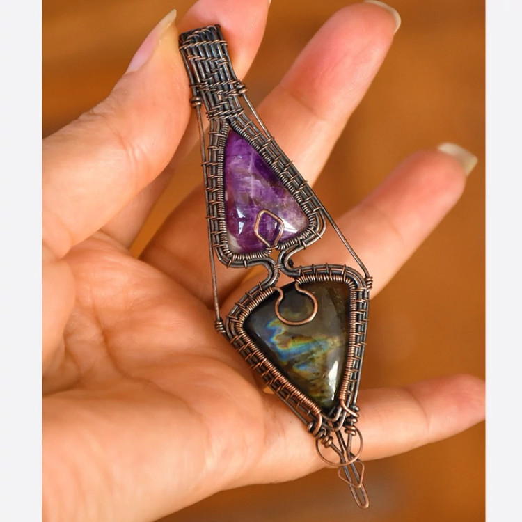 گردنبند سنگ آمیتیس و لابرادوریت