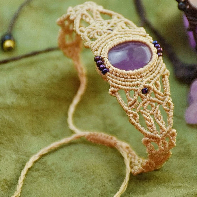 دستبند سنگ آمیتیس مکرومه