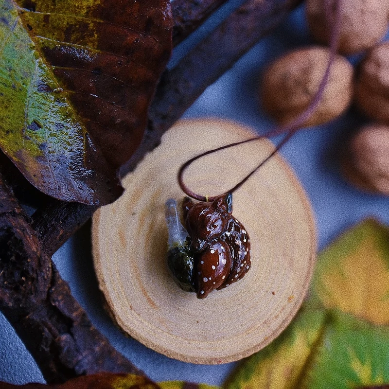 گردنبند ساخته شده با خمیر ایتالیایی کاملا دستساز بههمراه بند چرمی سنگ کار کوارتز شفاف