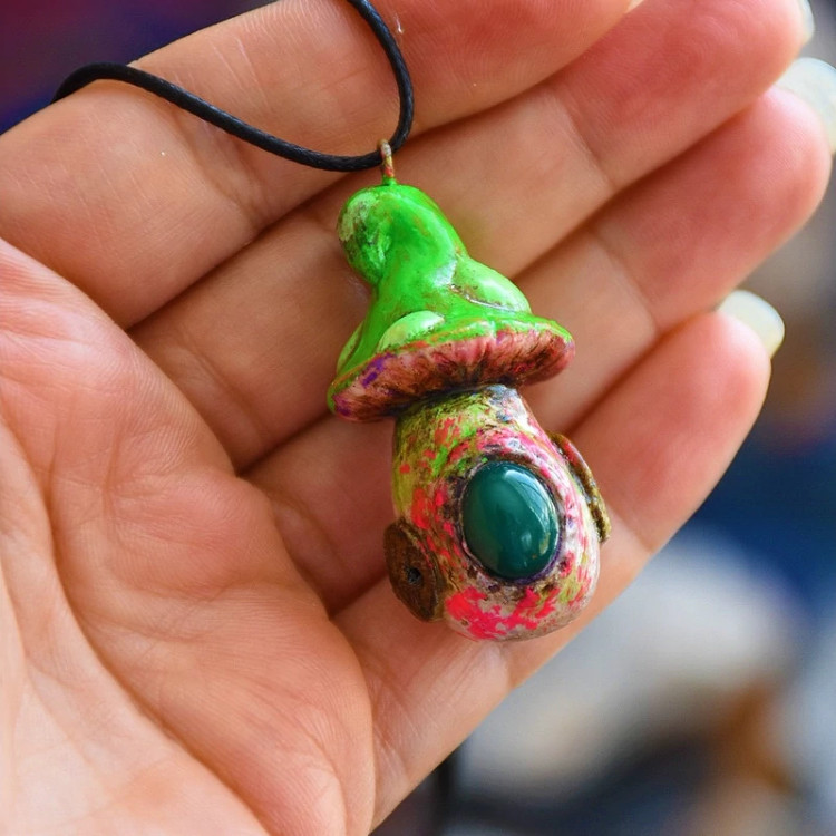 گردنبند عقیق سبز ماشروم جادویی